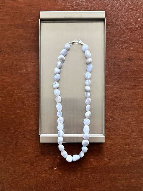 [어거스트하모니] 925실버 블루레이스 아게이트 페블 네크리스
