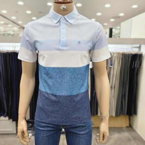 [피에르가르뎅](모다인천점)블루 엠보 한기장 스트라이프 쿨 냉감 티셔츠/PPTS2918_IC