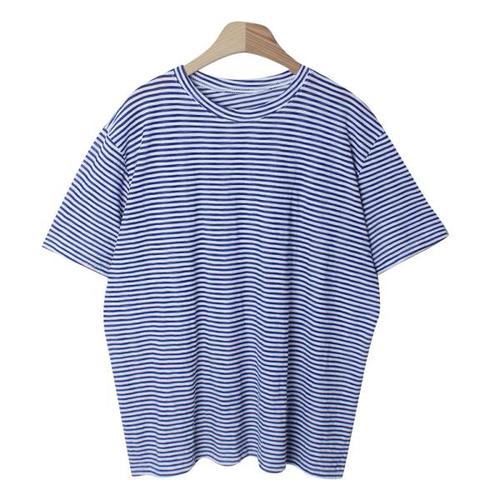 샵앤) 여성 스트라이프 루즈핏 반팔 티 DAI-WSH-0244-블루