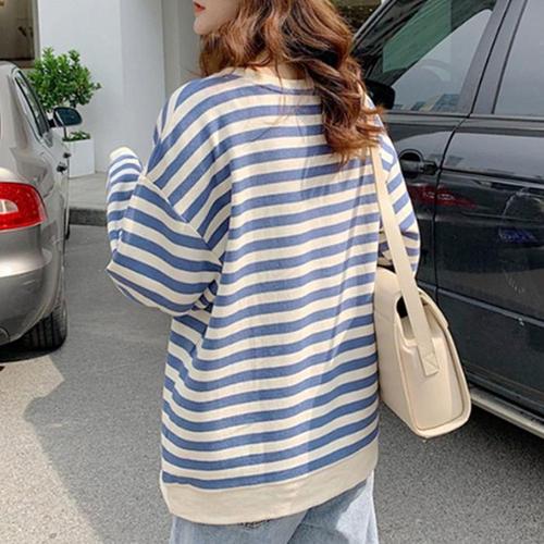 [BZFF8177_51IB]블루 스트라이프 여자 맨투맨티 캐주얼