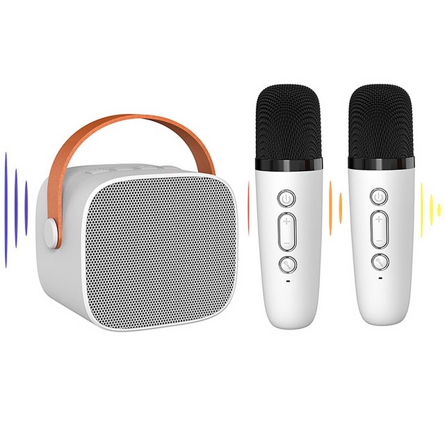 노래방 기계 무선 마이크 2개 포함 휴대용 블루투스 5.3 스피커 피치 보정 및 에코 조정이 가능한 PA