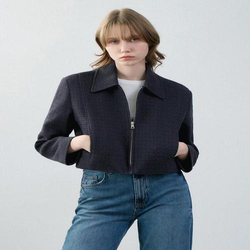 제로투올샵2 / 블루 트위드 여성 숏 재킷 가을 겨울 다크블루 S