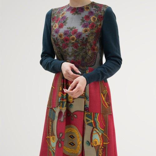 [비꼴리끄]울 프린트 니트 소매 슬림 원피스 B254WO3030