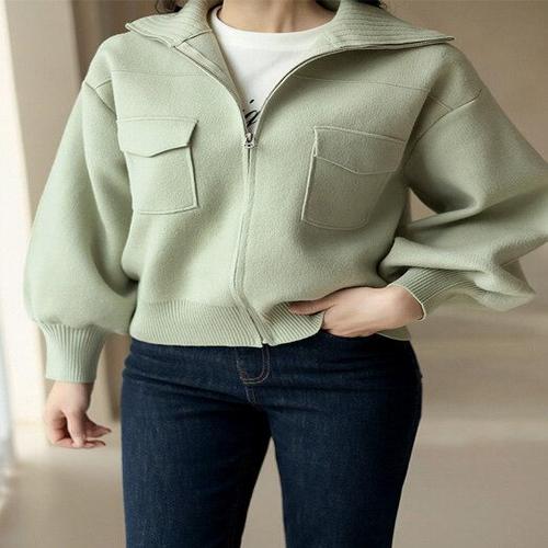 [스타일온미][스타일온미] 겐디크 비스코스 퍼프 블루종 집업 카라 니트 가디건