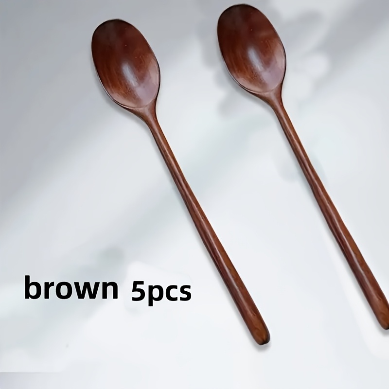 TEMU 5pcs 내구성 있는 나무 긴 손잡이 저녁 숟가락, 티스푼, 우유 꿀 수프 숟가락, 저어는 막대, 주방 액세서리