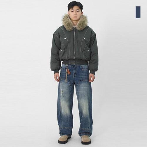 [스콰즈]스콰즈 남자 더블니 비즈 스트릿 블록 데님 팬츠 SCJP001