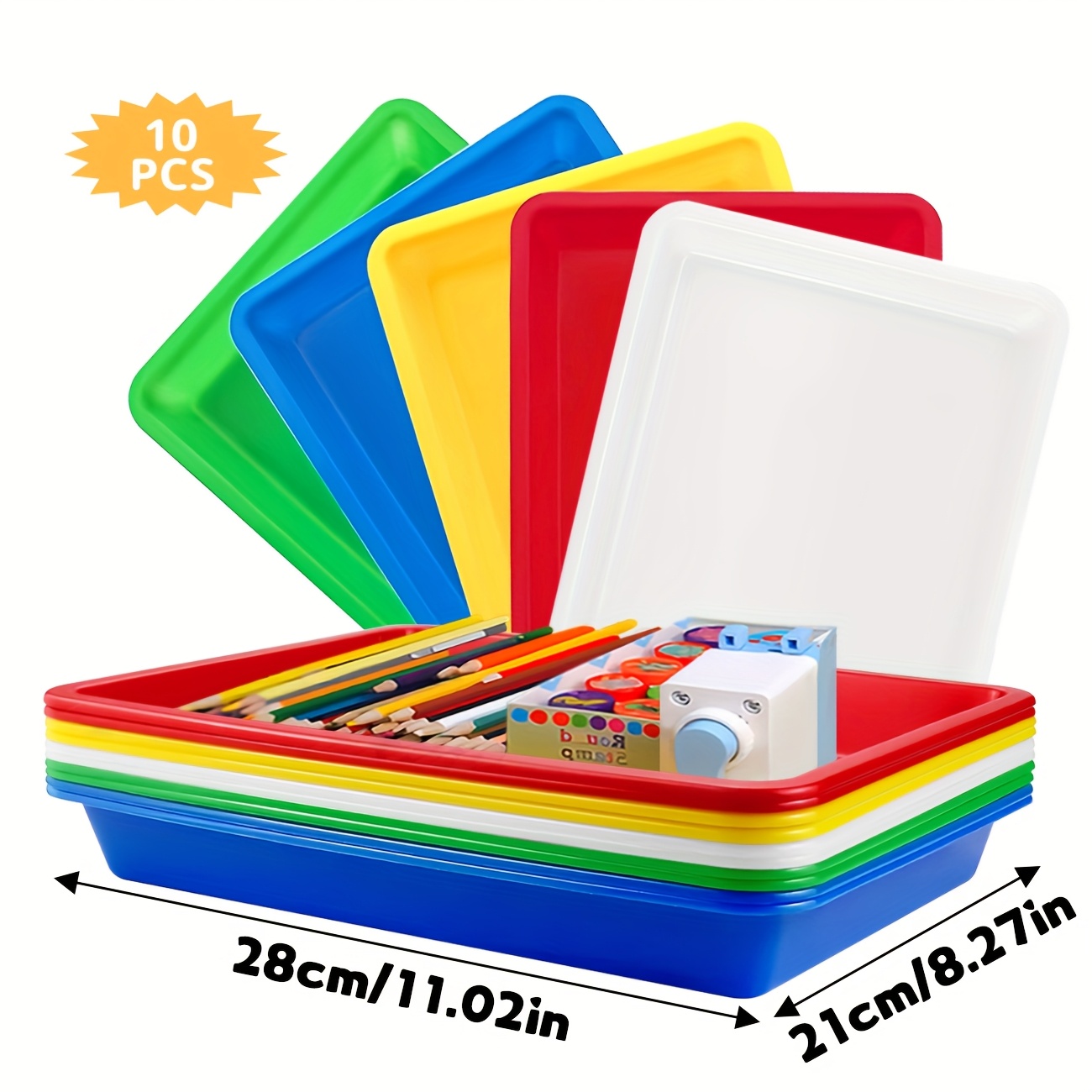 TEMU 10개 다색 플라스틱 트레이, 공예, DIY 프로젝트, 페인팅, 비즈 장식, 교실 및 가정용 정리 보관 트레이, 내구성 및 쌓을 수 있음 - 비즈 장식 트레이