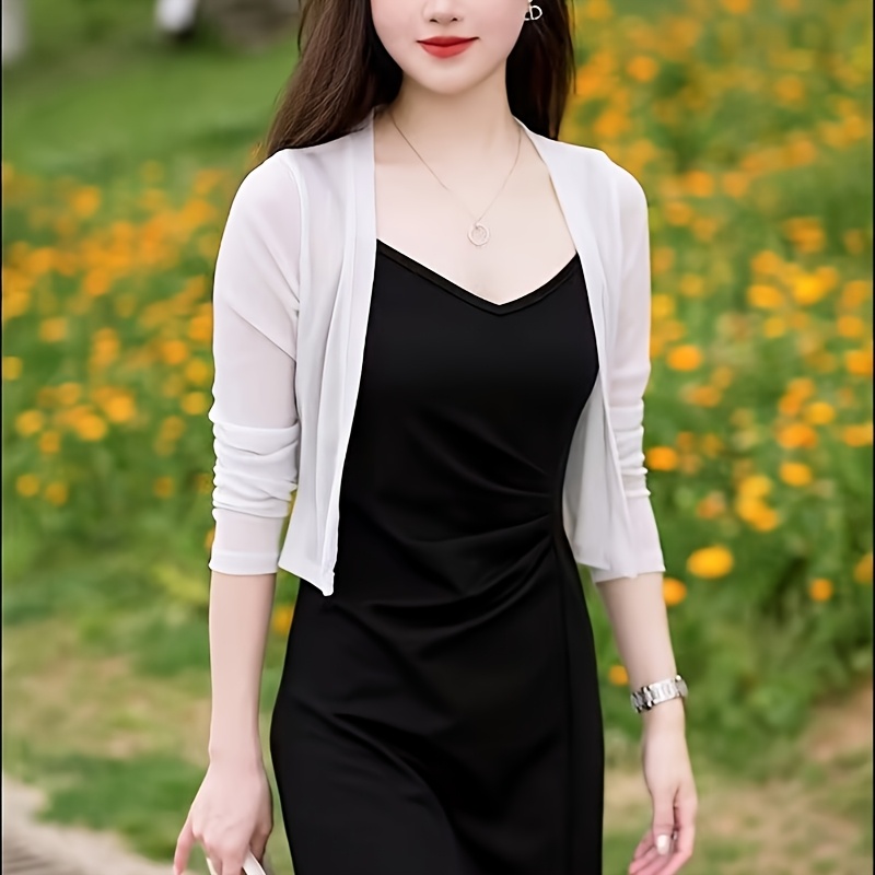 TEMU 1개 여성용 경량 여름 숄 가디건, 시어 숏 코트, 루즈 케이프, 긴소매 탑, 캐주얼 웨어, 경량 가디건, 여성용 여름 가디건, 여성용 가디건, 여성용 여름 가디건