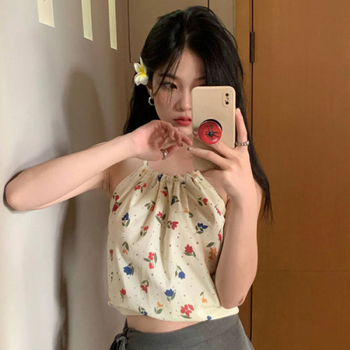 슈팅스타 / 플로럴 꽃무늬 홀더넥 오픈숄더 비치룩 나시