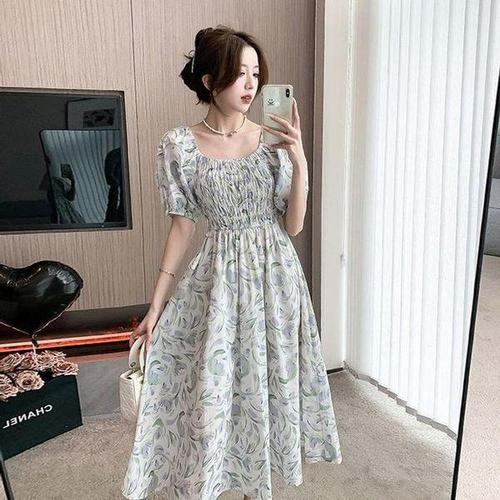 [셀러허브_여성트랜드패션]ONM 비치룩 바캉스룩 러플리 퍼프소매 플라워패턴 원피
