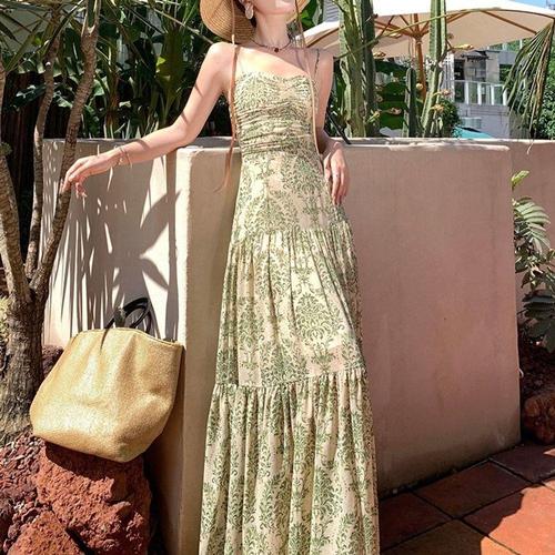 [오너클랜]인기상품 백리스 맥시 원피스 꽃무늬 끈나시 여름 비치 민소매 [WFHPCWU_260319]