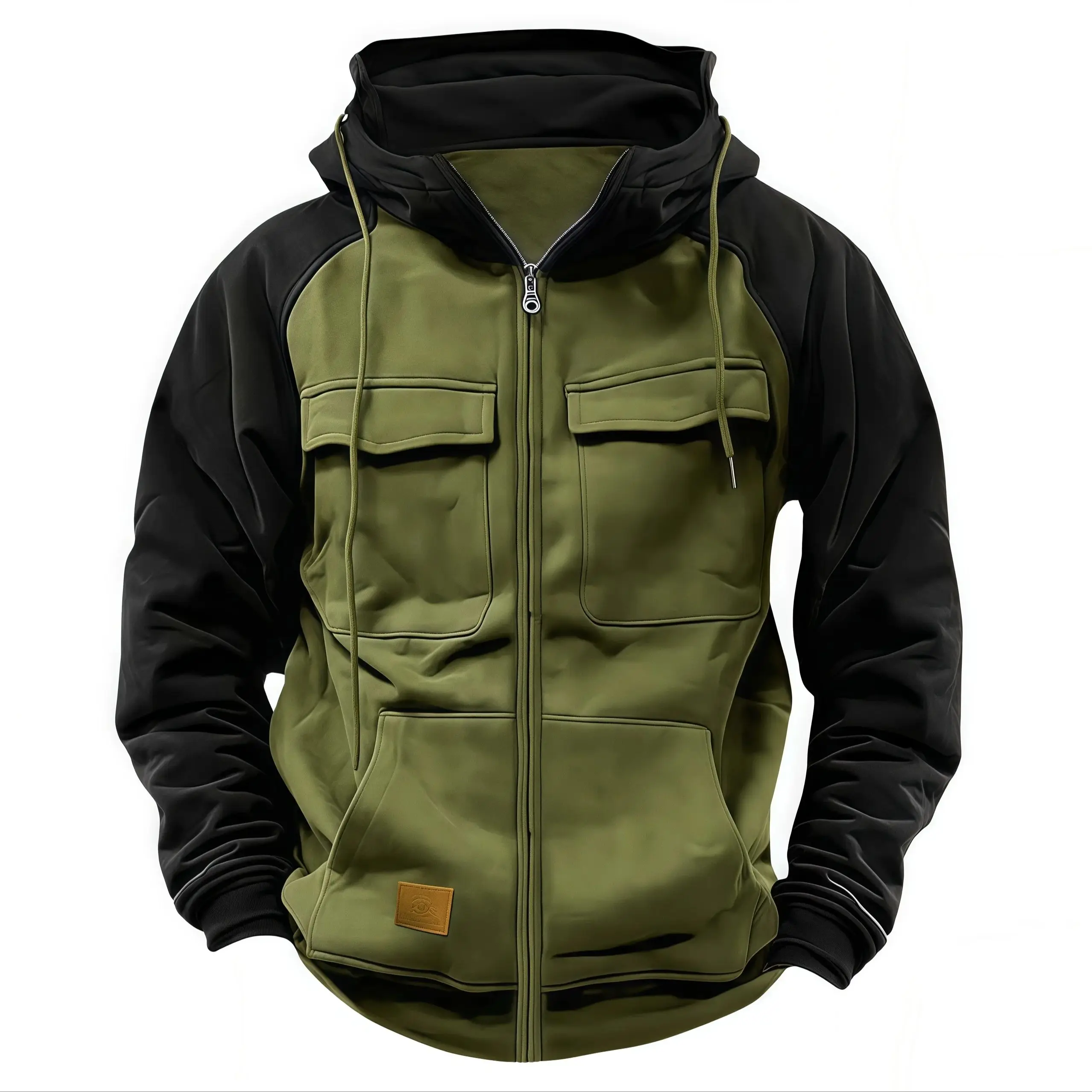 남성용 후드 긴팔 지퍼 재킷 - 모든 계절에 어울리는 세련된 컬러 패널 디자인, 어떤 상황에도 완벽하게 어울립니다.