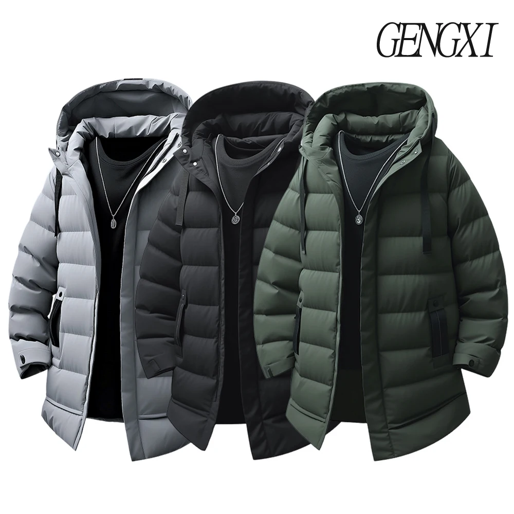 신상 겨울 남성 중간 길이 면 안감 코트 비즈니스 캐주얼 방풍 보온 패션 후드 재킷 스타일리시 남성복