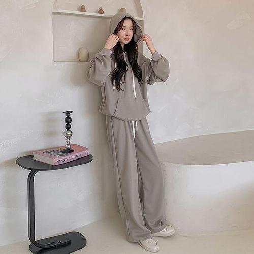 [유야]무지 후드티 일자 바지 트레이닝 세트 츄리닝 -PST0453H- 빅사이즈 루즈핏 여성 가을