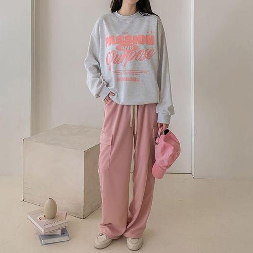 [유야]레터링 맨투맨 티셔츠 카고팬츠 트레이닝 세트 츄리닝 홈웨어 -PST0452H- 빅사이즈 루즈핏 여성 가..