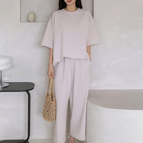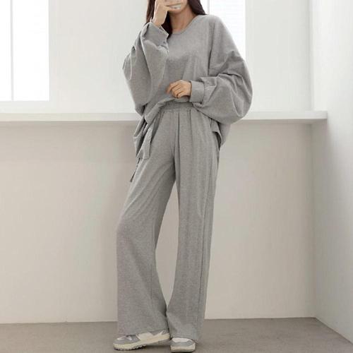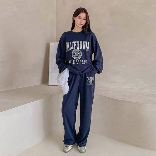 [유야]레터링 맨투맨 티셔츠 일자 바지 트레이닝 세트 츄리닝 홈웨어 -PST0451H- 빅사이즈 루즈핏 여성 ..