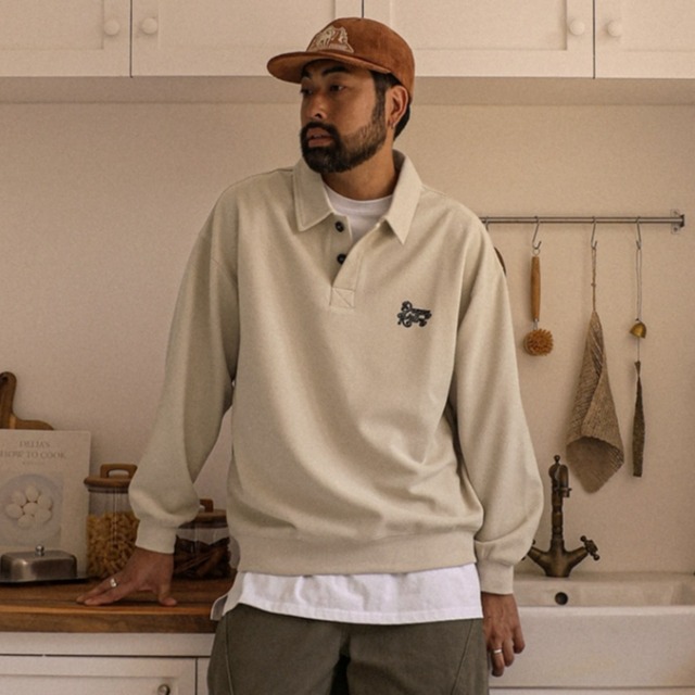 놈시크 (90-145)남자 헨리넥 티셔츠 오버핏 링클프리 빅사이즈 트임 브이 긴팔