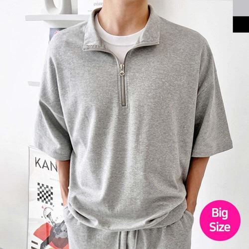 [오너클랜]인기상품 남자 국산 빅사이즈 탄탄한 반집업 반팔 맨투맨 [WFK8648_260406]