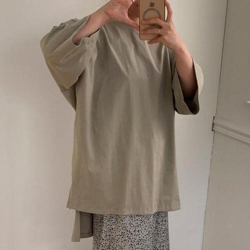 [하프클럽/]간절기 빅사이즈 롱 티셔츠 브이넥 7부 9부 박스 긴팔