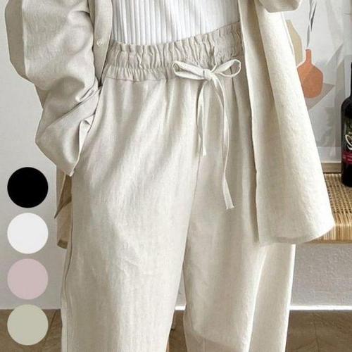 [에이치플러스몰]슬림핏 오피스룩 빅사이즈 일자 면바지 린넨 봄