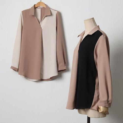 [셀러허브_여성트랜드패션]빅사이즈 511 배색하프카라블라우스 DOLJ509