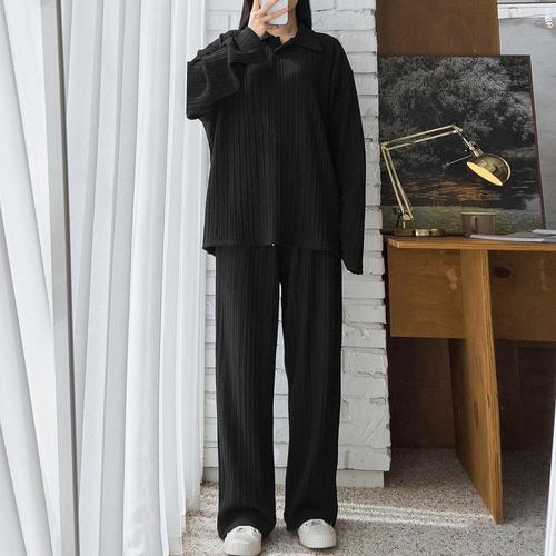 RCLET 여성 캐주얼 세트 춘추 반집업 후드티 + 와이드 팬츠 투피스 빅사이즈 긴팔티+바지