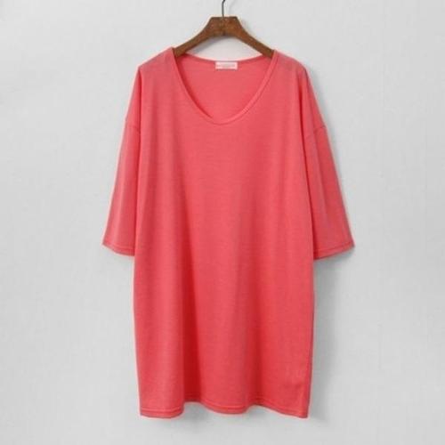 여성 빅사이즈 하프브이넥롱반팔티 ILC834M305