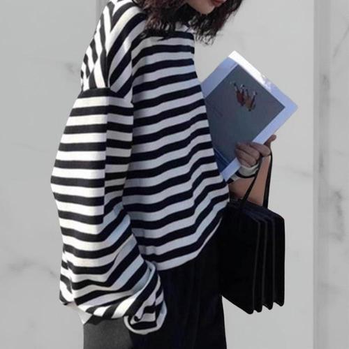 [다잇템]여성 무드 빅사이즈 단가라 롱슬리브 티셔츠