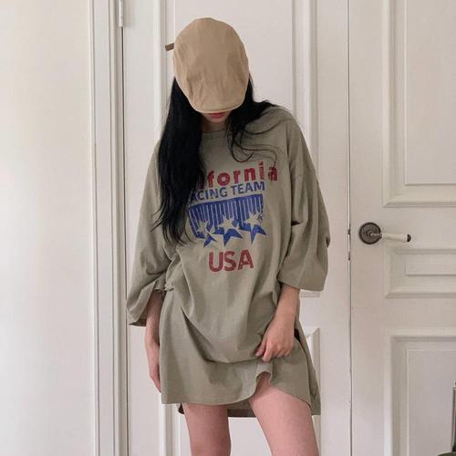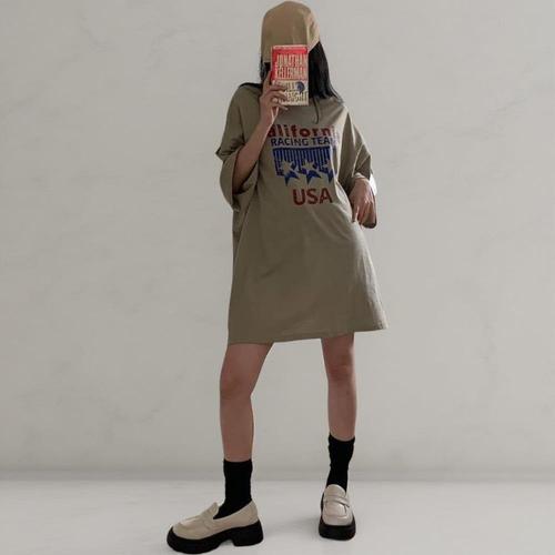 [다잇템]여성 그런지 빅사이즈 워싱 롱 반소매 티셔츠