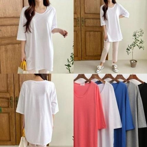 [엄지척]스판 Bd 여성의류 반팔 롱 박스 무지 오버핏 빅사이즈_19599156_667501