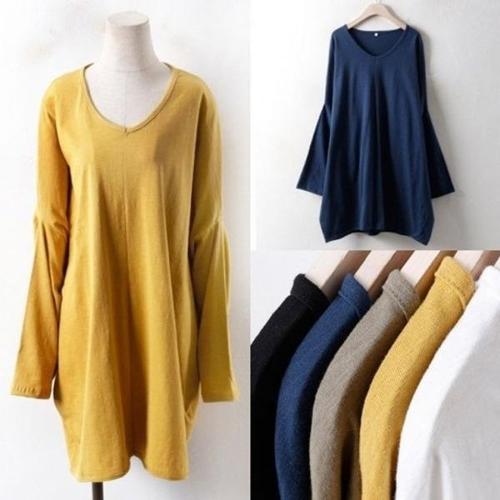 지고다그 여성 가을겨울 빅사이즈 V넥 루즈핏 니트 스웨터 롱티셔츠 HH2636