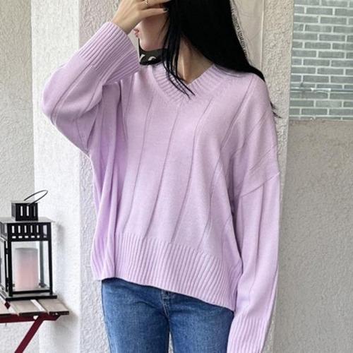 [엄지척]빅사이즈 오버핏 여자 베이직 브이넥 긴팔 니트티_19610674_667501