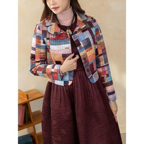 [디얼마미]격자 카라 양단 누빔 자켓 /마담 미시 중년 여성 빅사이즈 40대 50대