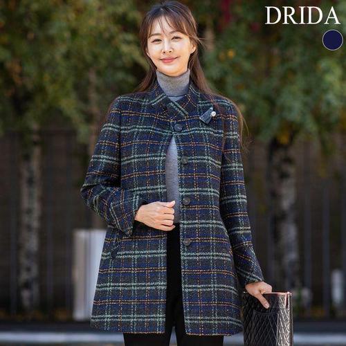 [드리다]엄마옷 여자 겨울 체크 하이카라 빅사이즈 울 코트 50-60대 중년 여성 하객 상견례 출근 옷선물