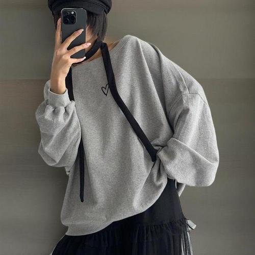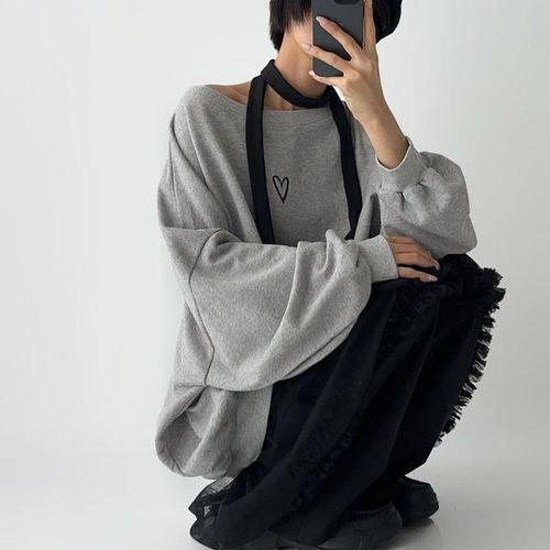 [신상오픈런]여성 하트 디자인 빅사이즈 보트넥 코튼 박시 맨투맨