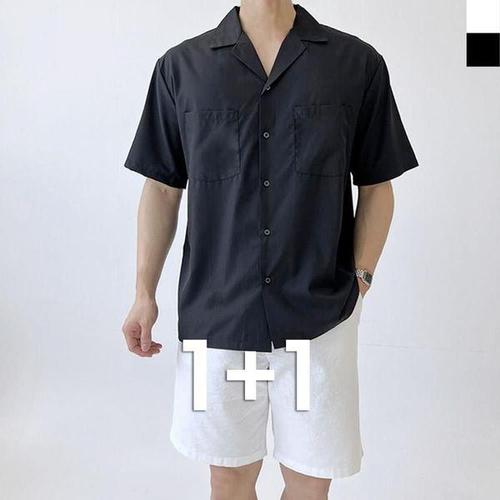[1+1] 이브 구김없는 남성용 스판 일반핏 정장 반팔 와이셔츠 빅사이즈 (6639-2)