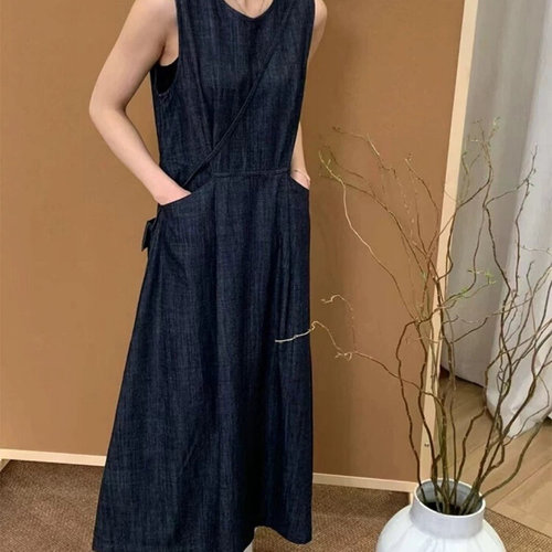 여름 데님 A라인 민소매 나시 롱 원피스 바캉스 청원피스 빅사이즈