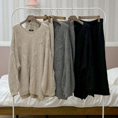 [다잇템]여성 V넥 빅사이즈 스웨터 투피스 세트