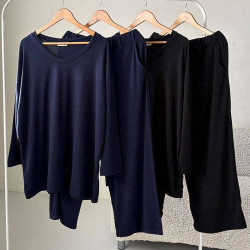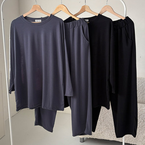 [아이우먼]빅사이즈 407 무지브이티팬츠투피스 DRAI926