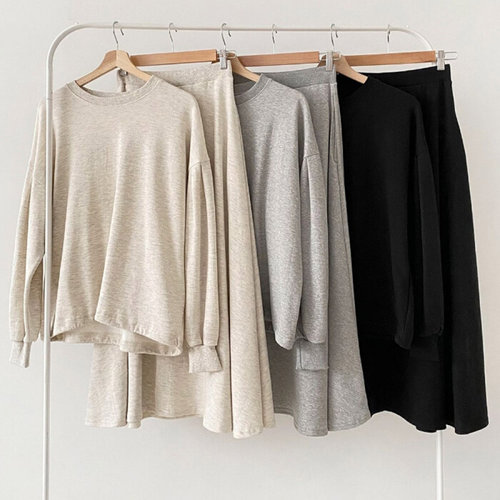 [셀러허브_여성트랜드패션]맨투맨 캉캉 스커트 2종 코디 세트 투피스 빅사이즈