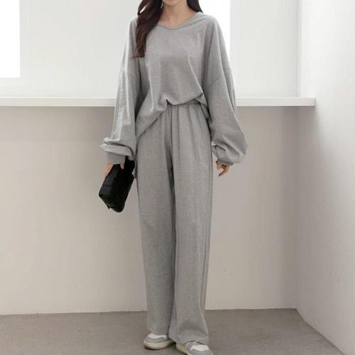 AOUGK 여성 빅사이즈 트레이닝복 후드집업 와이드팬츠 상하세트 츄리닝 투피스 오버핏 후드티 + 밴딩 바지