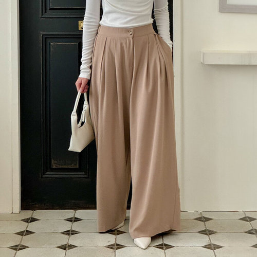 [큐즈샵] 여성 와이드 팬츠 면바지 하이웨스트 오염방지 발수 발유 키작녀 키큰녀 바지 빅사이즈