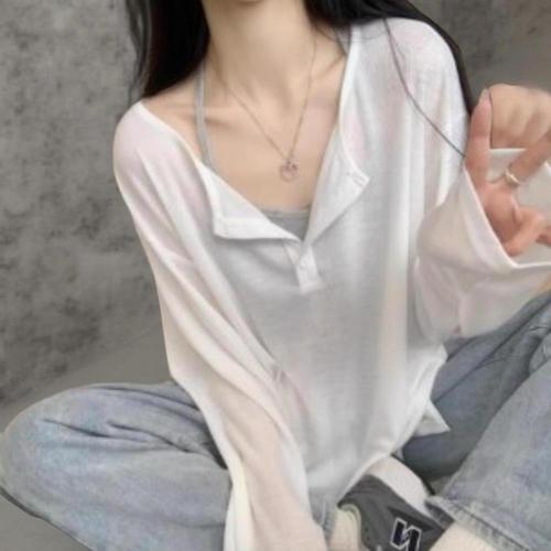[다잇템]여성 헨리넥 롱슬리브 빅사이즈 캐쥬얼 티셔츠