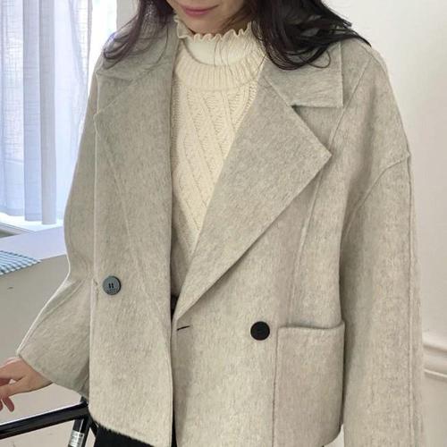 [옷자락] 여자 가을 겨울 빅카라 버튼 포켓 크롭 숏 울 코트