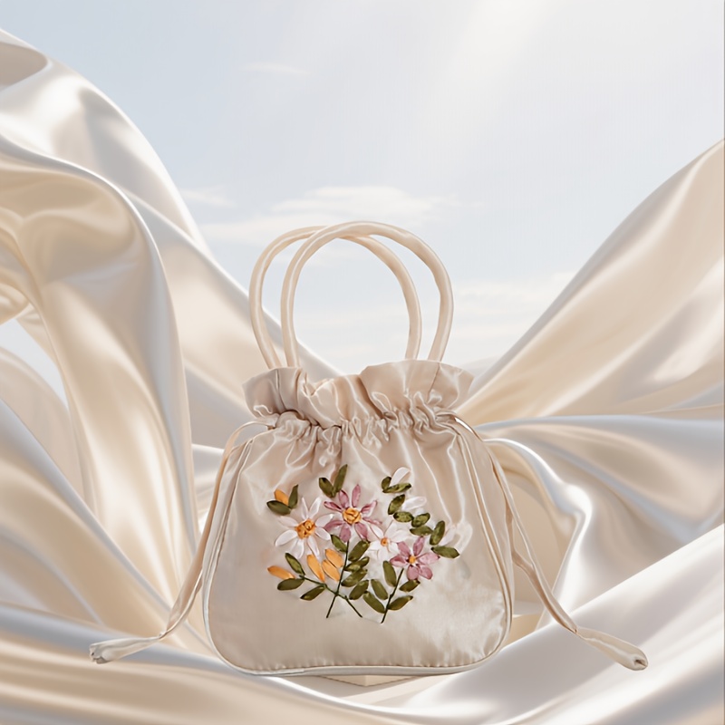 TEMU 빈티지 자수 드로스트링 토트백, 여성용 다기능 수납 가방, 지갑, 카드 홀더, 원형 버킷백, 손목 스트랩 포함. 자수 장인이 품질을 더해줍니다. 손으로 들거나 손목에 걸어 들여다 볼 수 있습니다.