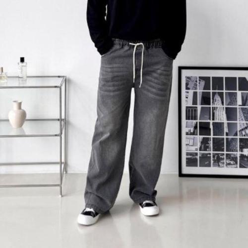[다잇템_패션]빈티지 드로우코드 넓은 유니 워싱 진 밴딩
