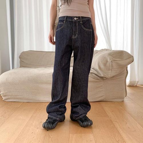 [옷자락]여성 빈티지 논페이드 생지 진청 와이드 데님 청바지