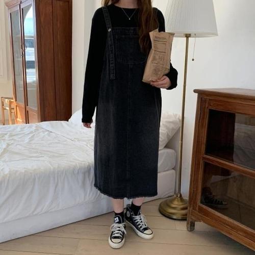 [다잇템][다잇템] 여자 라이트블루 티셔츠 빈티지 서스펜더 블랙진 FW 데님스커트 세트_18937147_588872