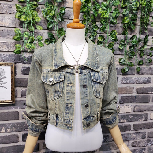 [BZJL2HIV_4B]크롭 빈티지 데님 청자켓 유니크 워싱 외출복