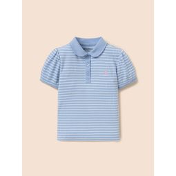 [10%OFF][BEANPOLE KIDS] 여아 T카라 스트라이프 골지 반소매 티셔츠 - 스카이 블루 (BI6342G06Q)